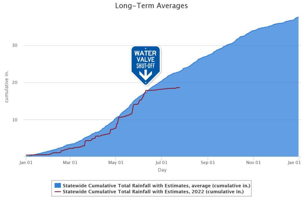Here in central Oklahoma, we have had less than 0.1 inch of rain in 6 weeks. We have also had baking heat of 100º for a couple weeks. We would like to think this flash drought and heat wave are unusual, but climate trends are showing us otherwise.
